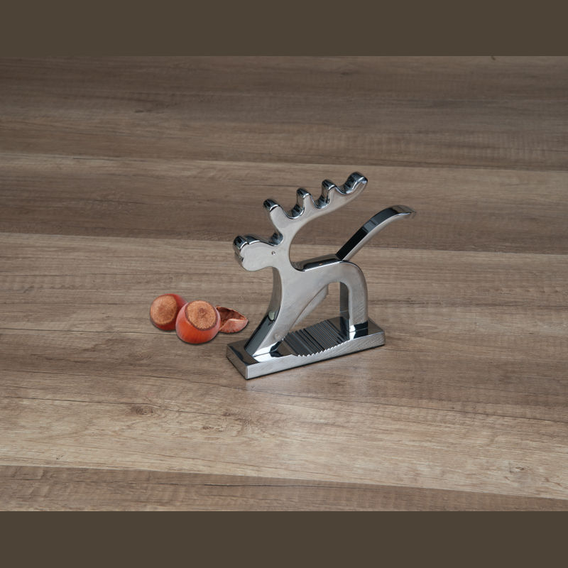Premium metal nutcracker shaped like a moose, featuring a lever mechanism for effortless cracking.