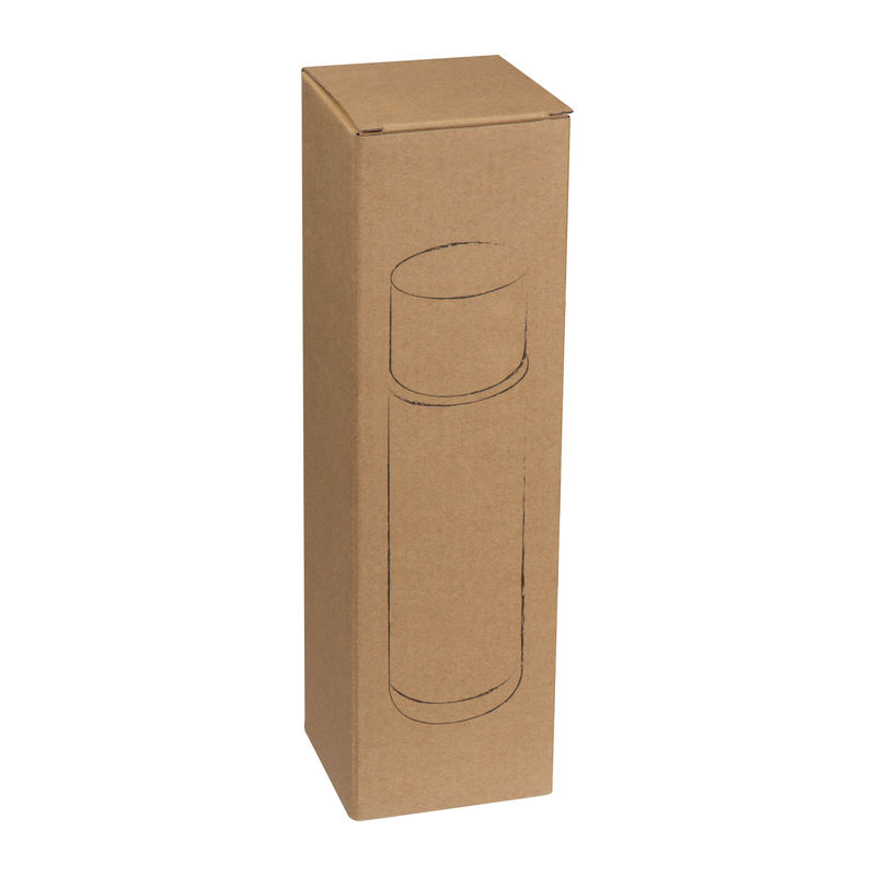 Leak-proof, double-walled stainless steel vacuum insulated thermos bottle featuring an integrated cup within the lid. Capacity: 500 ml.