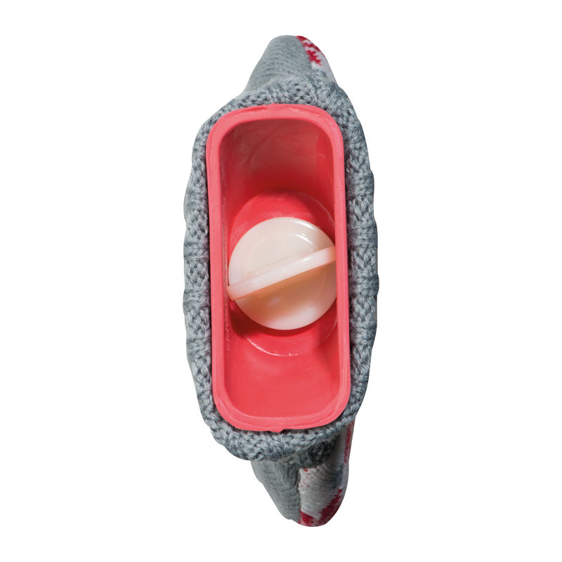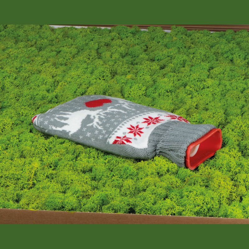 Rubber hot water bottle with a wool-knitted Christmas cover/sleeve. Filling capacity 500 ml.