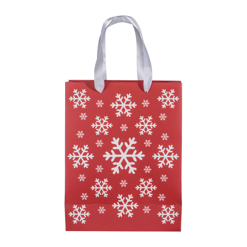 Christmas gift bag crafted from paper, featuring a snowflake design and two handles. Your logo will be printed on the attached label.