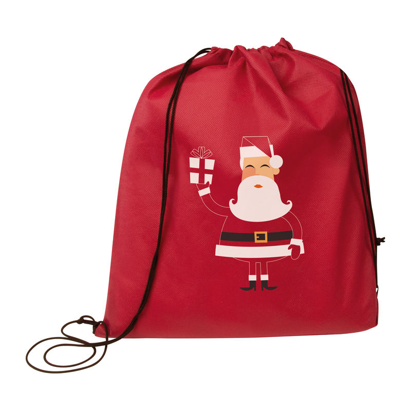 Non-woven sports bag featuring an attractive Santa Claus motif.