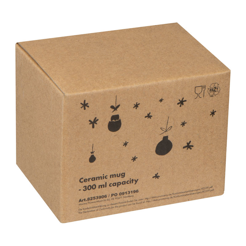 Classic ceramic mug featuring a Christmas motif, with a capacity of 300 ml. The logo is discreetly printed on the available space of the cup.