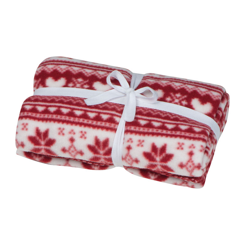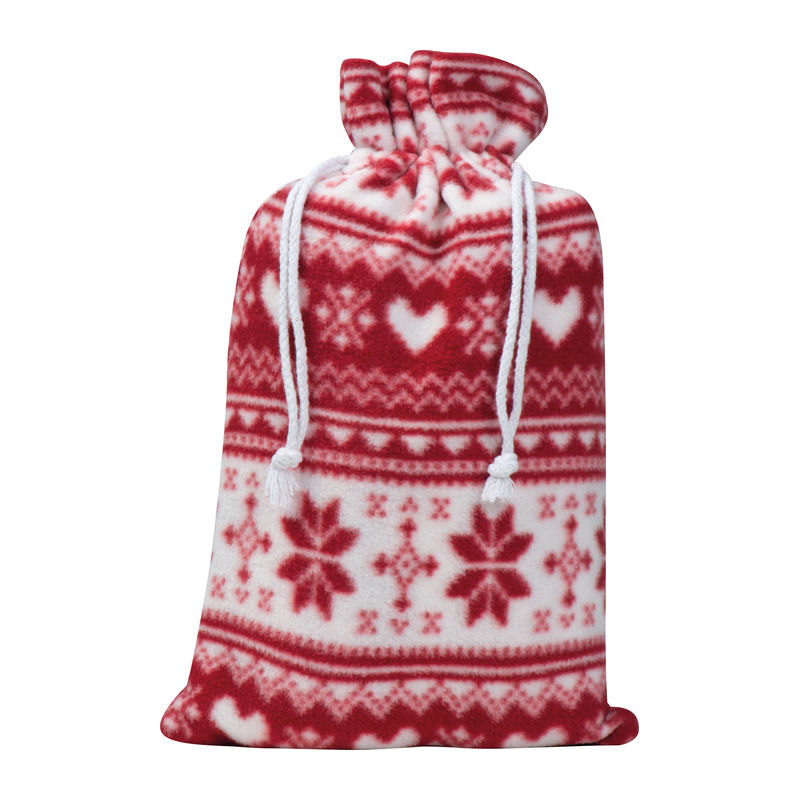 Soft 200g/m² fleece blanket featuring a festive print, presented in a drawstring bag. Your logo will be prominently displayed on the bag.