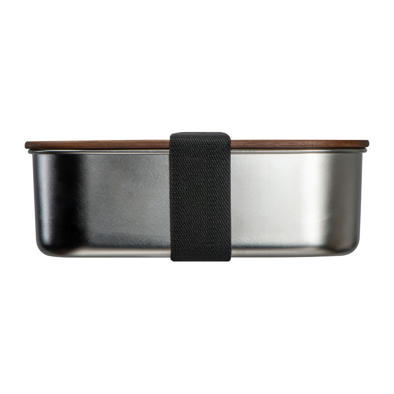 Crafted from recycled stainless steel, this MoLu lunchbox combines elegant design with practical functionality. Offering a generous capacity of 1,000 ml, it provides ample space for your meals. The lid, made from premium acacia wood, imparts a sophisticated appearance and can be securely fastened with a robust elastic band to keep contents fresh and safe. It perfectly merges style and utility, making it an ideal promotional gift or a practical accessory for everyday use. Presented in exclusive gift packaging with a 2-year warranty.