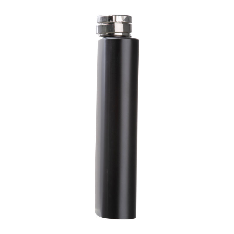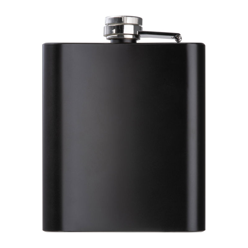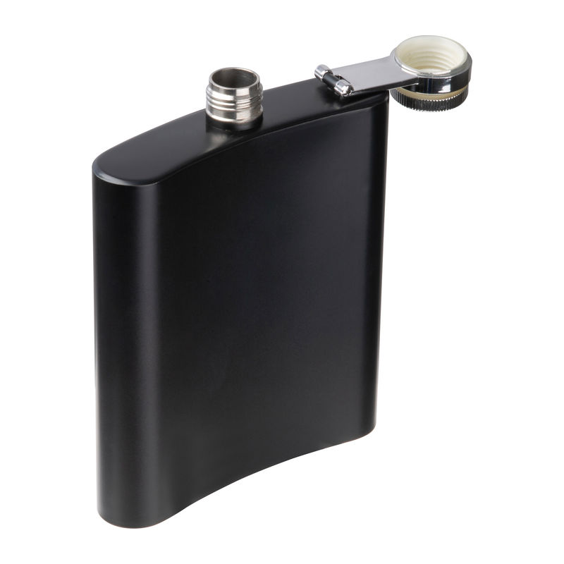 Elegant stainless steel hip flask featuring a matte black finish and a capacity of 207 ml. Ideal for portable use or as a sophisticated gift.