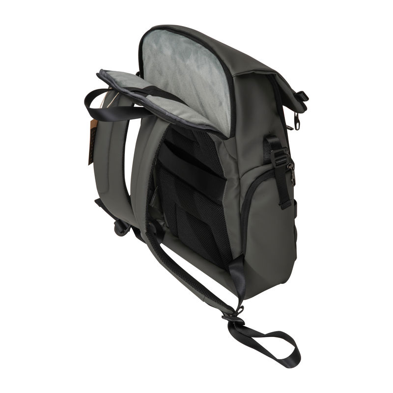 Modern-looking backpack from the MoLu collection, made from recycled polyester. Elegant and stylish, it offers generous storage space thanks to its functional interior design. The velvety plush laptop compartment and the iconic horseshoe pattern lining give the backpack a distinctive and refined appearance. A reliable travel companion, it features a suitcase strap and a fully opening storage compartment. In addition, its padded back panel and shoulder straps make it ideal for everyday use. Designed with exclusive styling and crafted to high-quality standards. Provided with a 2-year warranty.