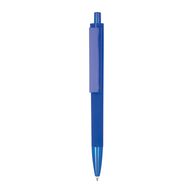 This high-quality ballpoint pen, featuring blue ink and crafted from recycled ABS, impresses with its robust construction. The rubberised surface ensures a comfortable grip, while the tip and push button are elegantly finished with a refined UV plating.
