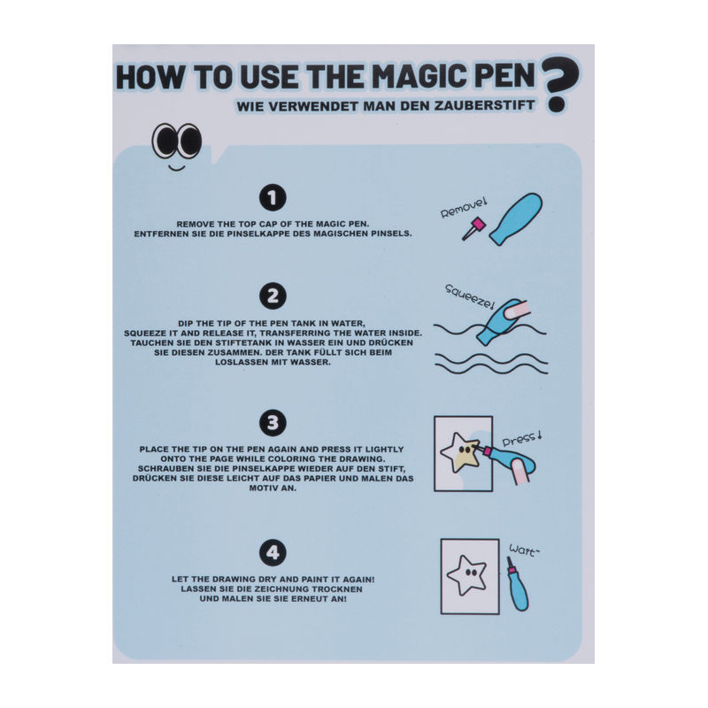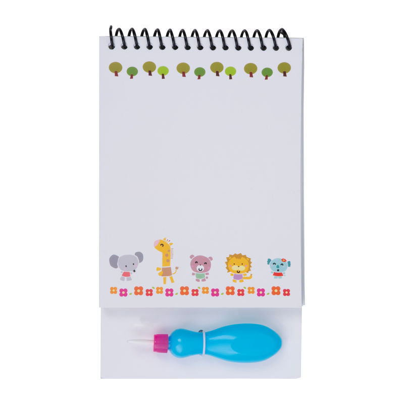 A magical activity for children that captivates repeatedly with just a little water. Simply fill the brush with water and paint on one of the four pages featuring charming animal motifs. Colours appear upon contact with water and vanish when dry, allowing endless enjoyment.