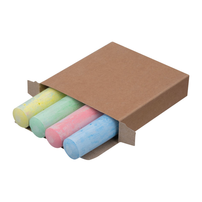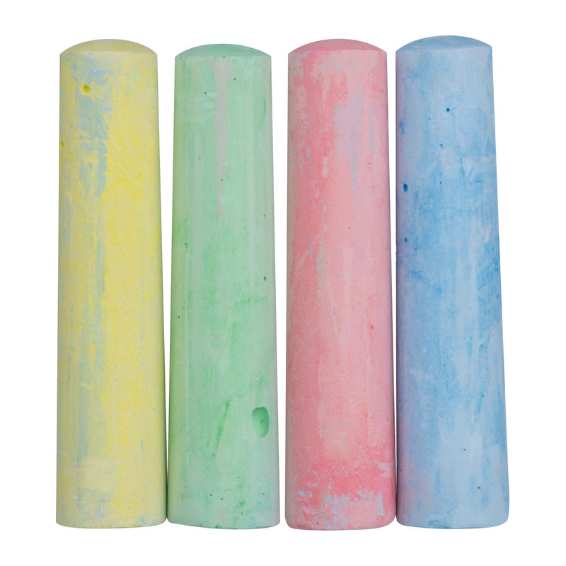 Street chalk set comprising 4 chalks in blue, red, green, and yellow, presented in a cardboard box.