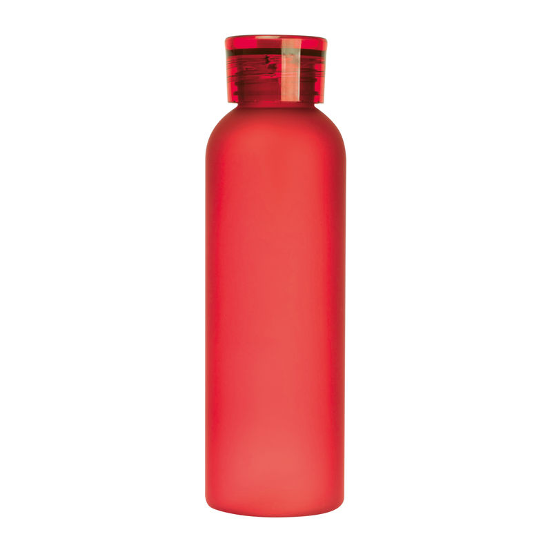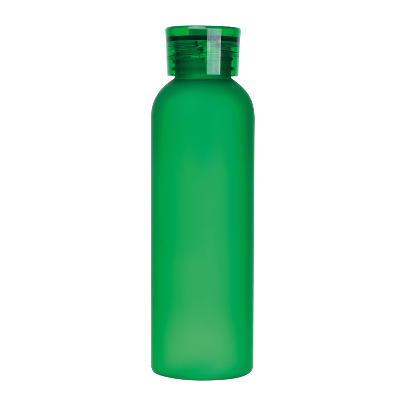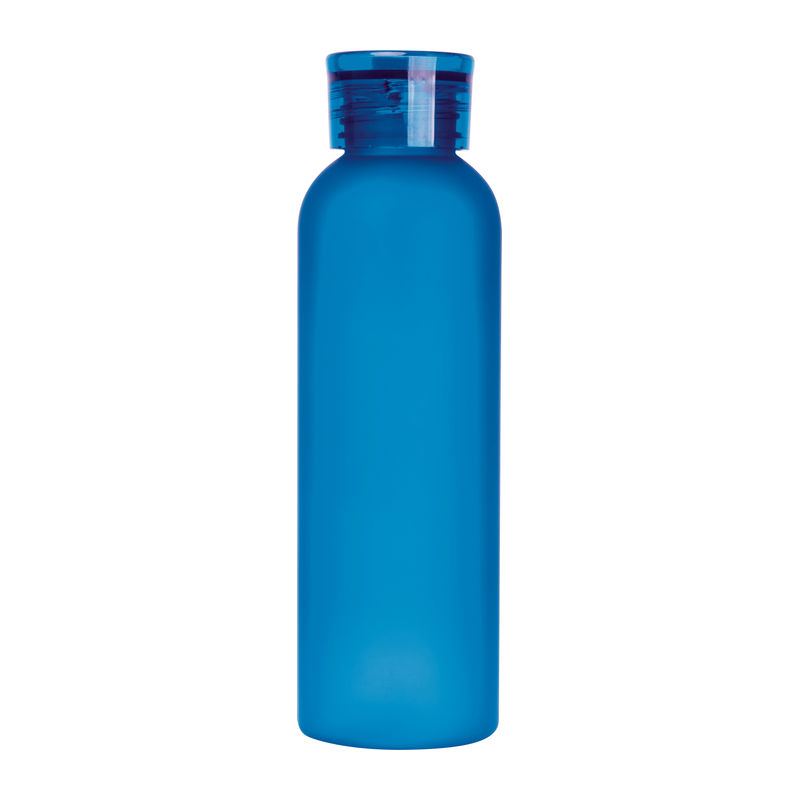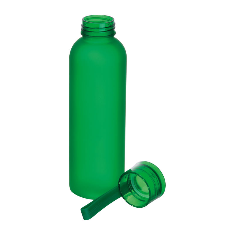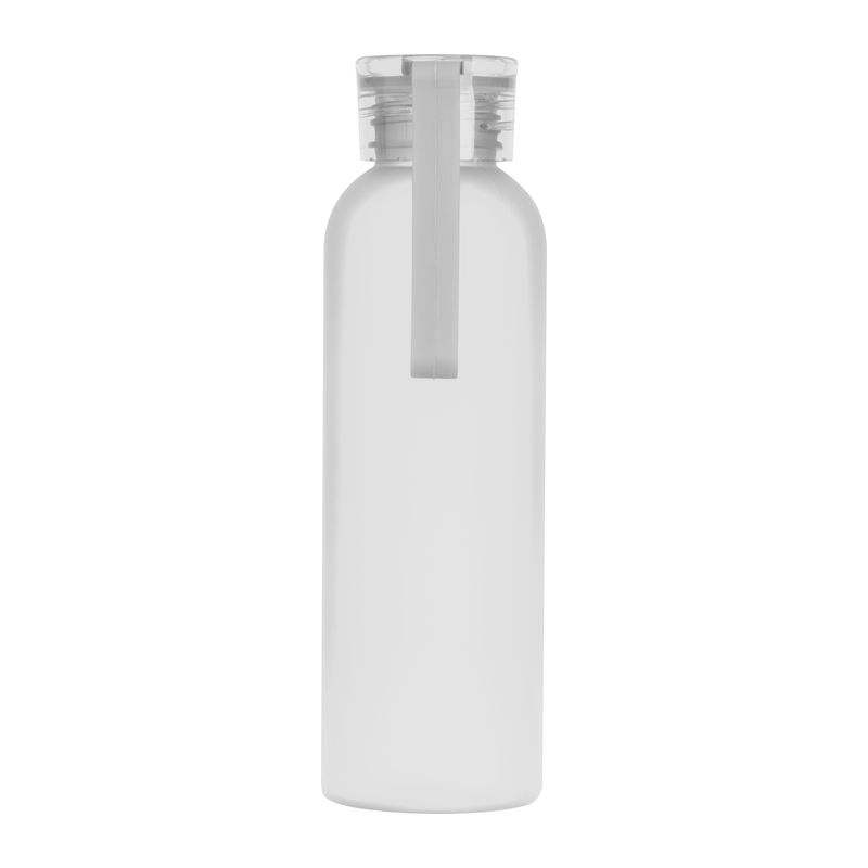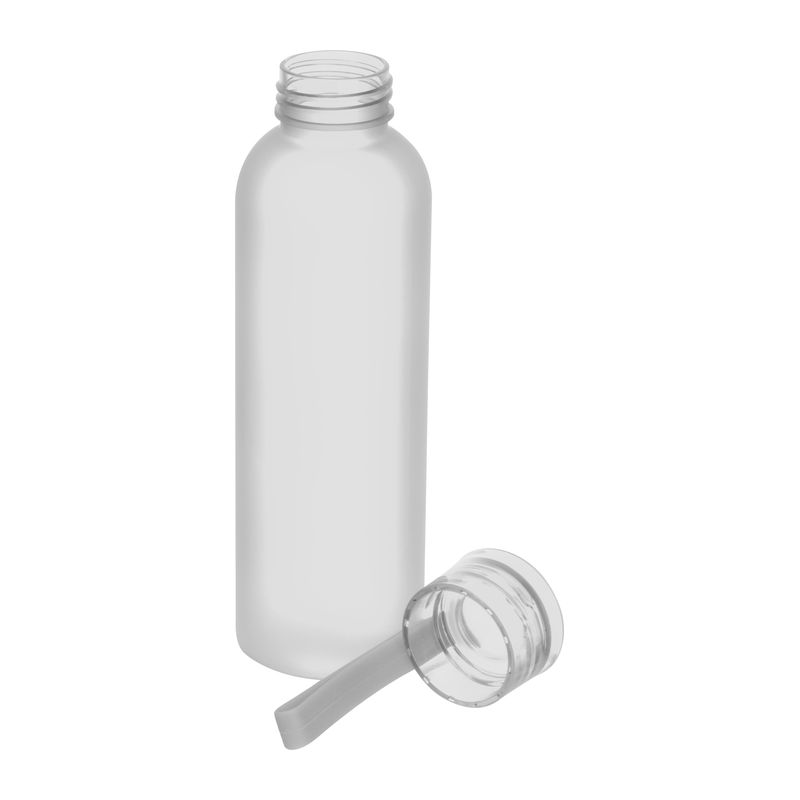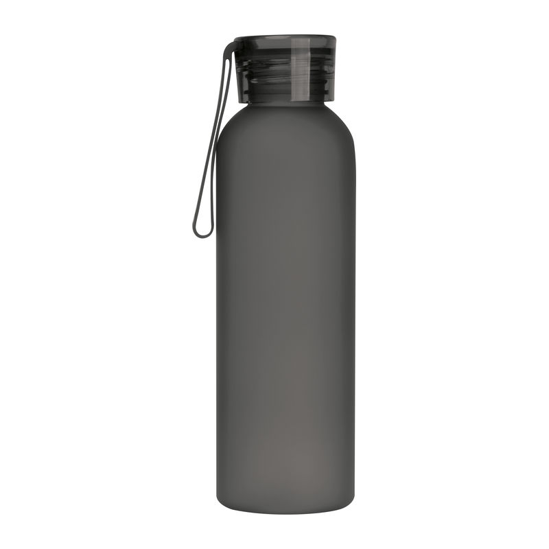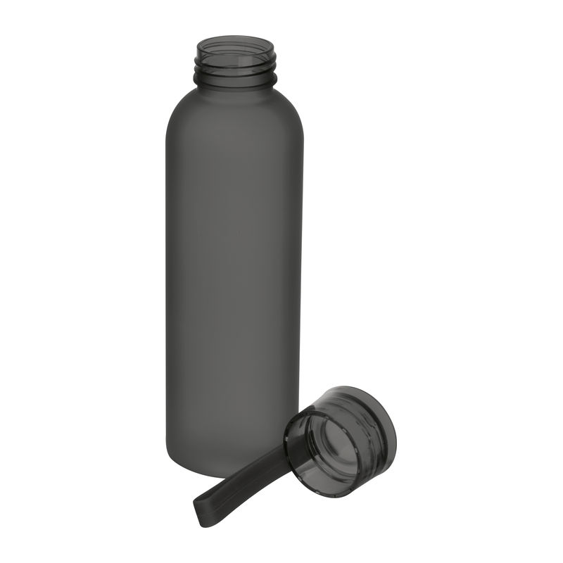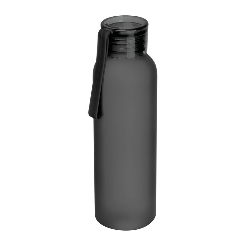 Water bottle made of PET with a rubber carrying handle on the cap and a capacity of 600 ml. The frosted surface provides an exceptionally pleasant tactile feel.