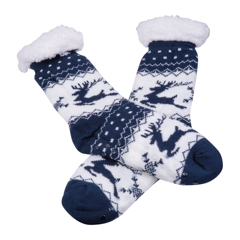 Non-slip one-size stockings featuring a festive Christmas design, crafted from polyester. The plush lining ensures exceptional warmth and comfort.