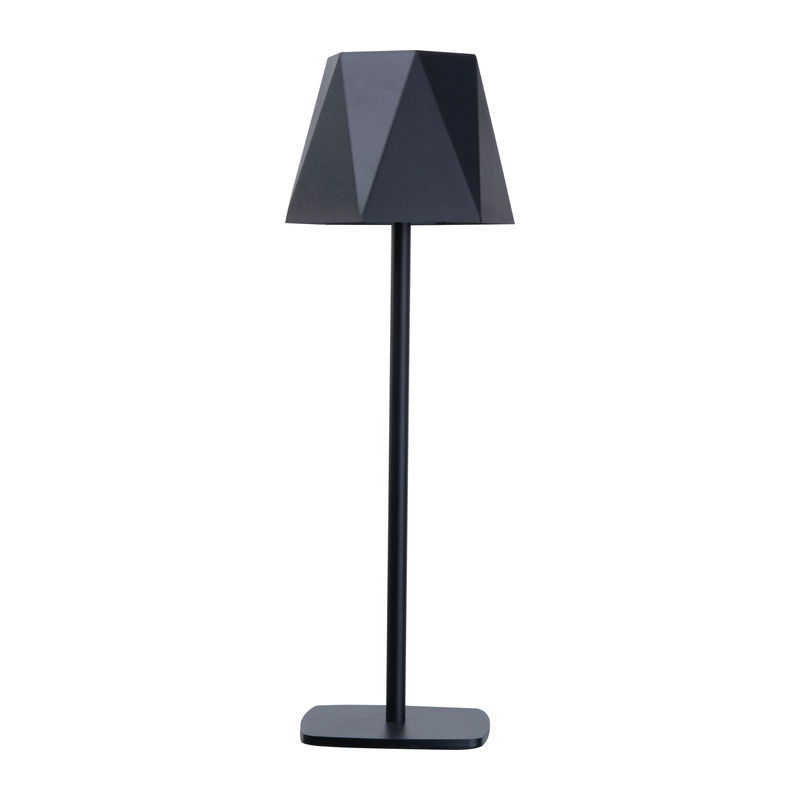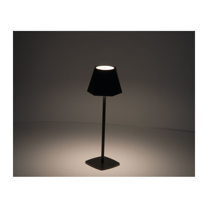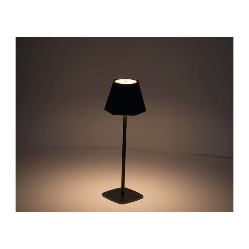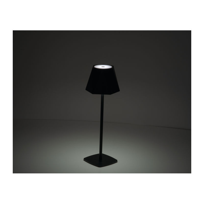 Table lamp featuring a stainless steel base and a polypropylene lampshade. The lamp is equipped with a 1,800 mAh lithium-ion battery (3.7V) and 28 LEDs, delivering 130 lumens at 2.5 watts. It offers seamless dimming via a touch sensor, allowing adjustment between 3,000K (warm light) and 6,000K (cool light). A one-metre USB-C charging cable is included. The lamp provides an approximate burn time of 5 hours when fully charged.