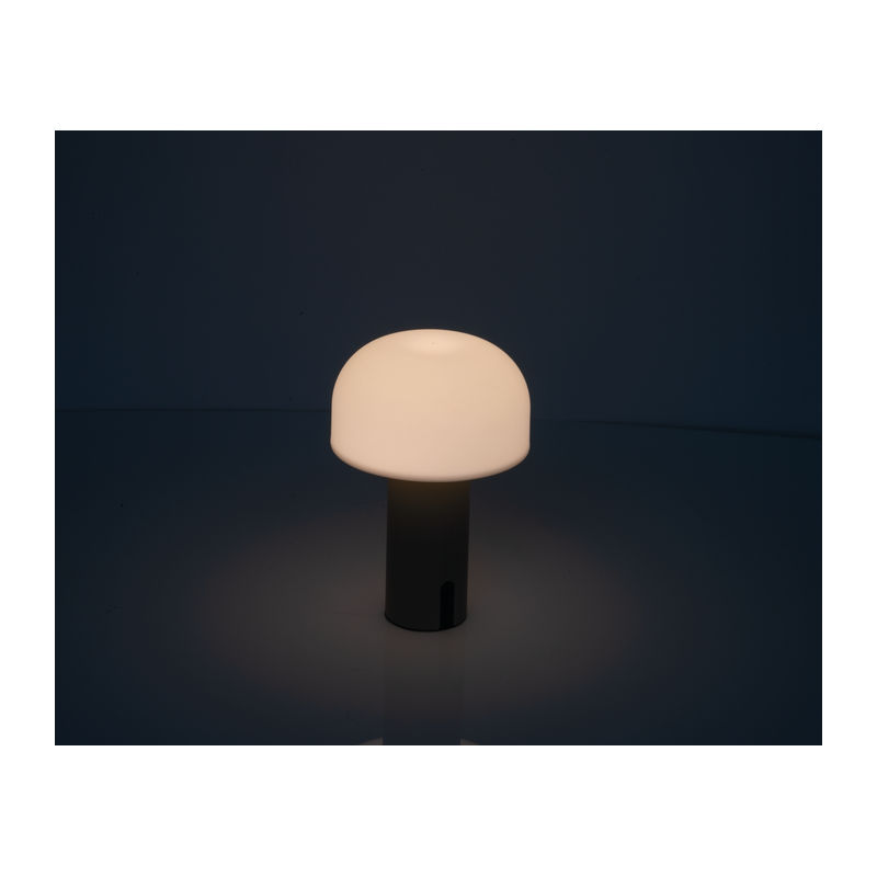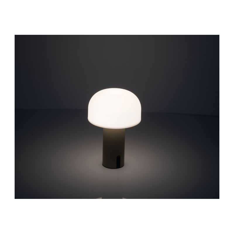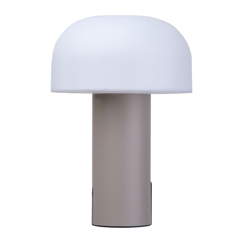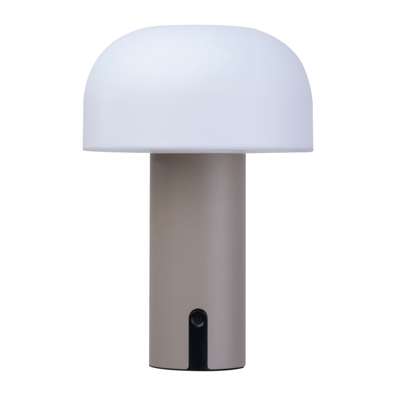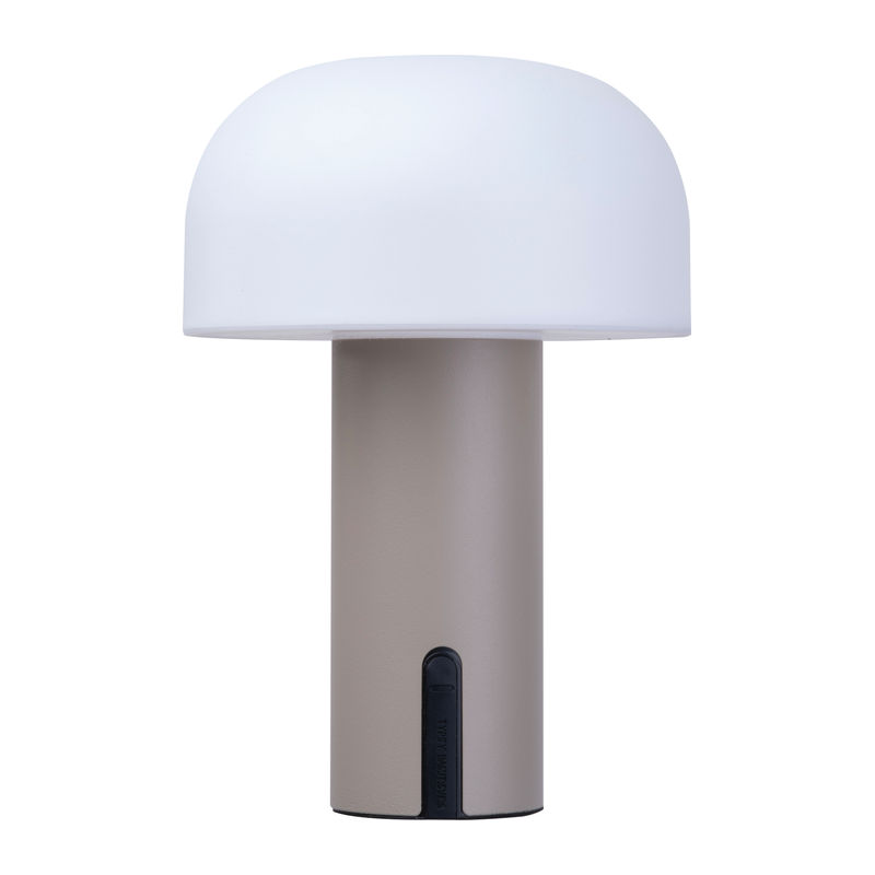 Lamp featuring a plastic lampshade and a stainless steel base, accompanied by a 70 cm USB-C charging cable. The lamp is equipped with 12 LEDs (type 2835, 150 lumens, maximum 1.5W) and a touch sensor for switching on and off, with a continuously adjustable dimming function. The burn time is approximately 4.5 hours on a full charge.