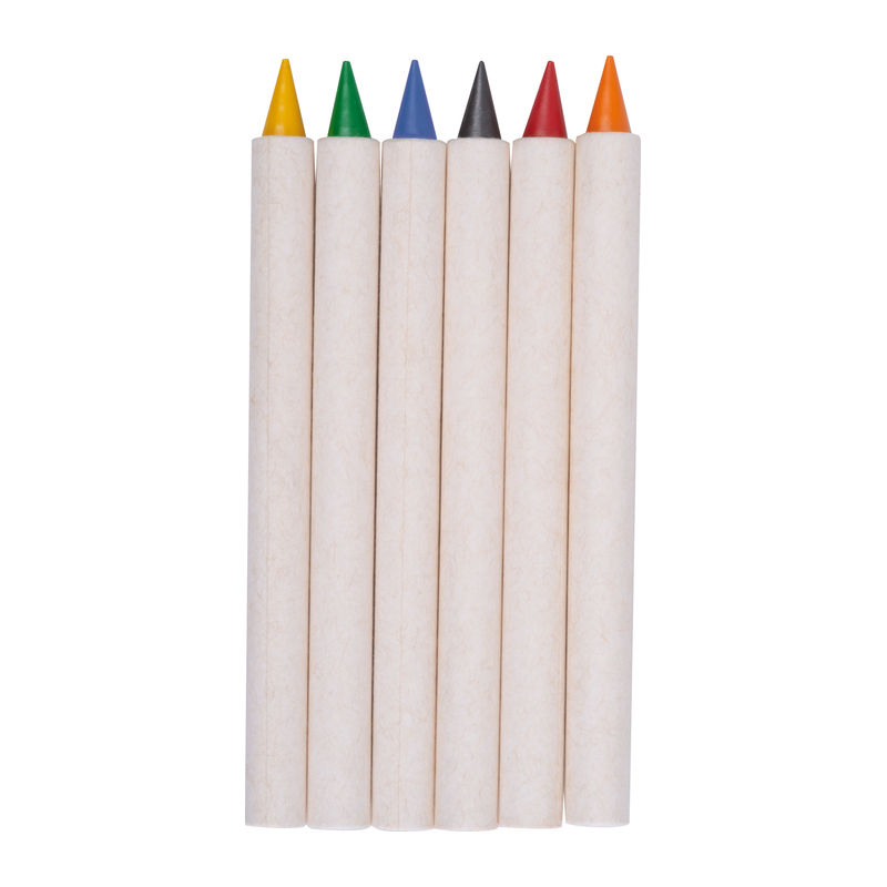 Set of six wax crayons in assorted colours, featuring a special infinite TPR core. These wax crayons are erasable.