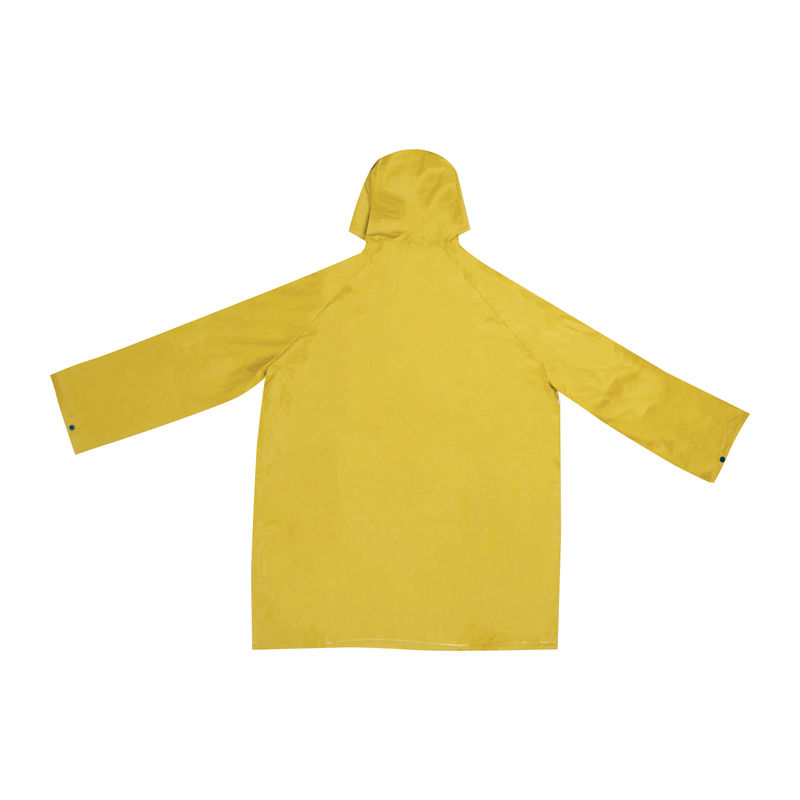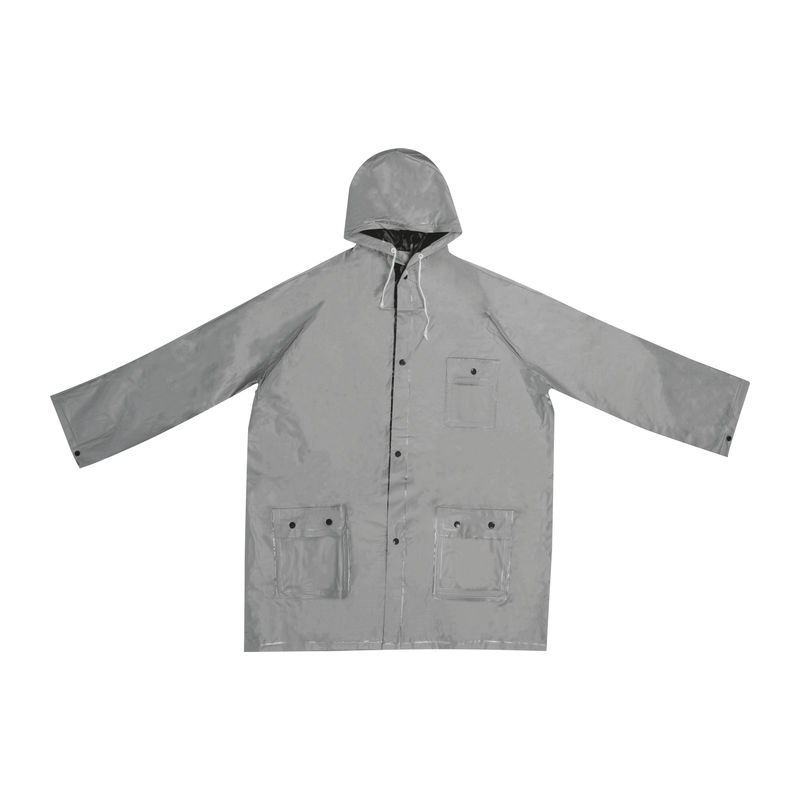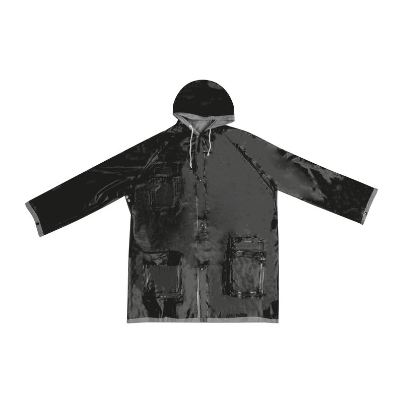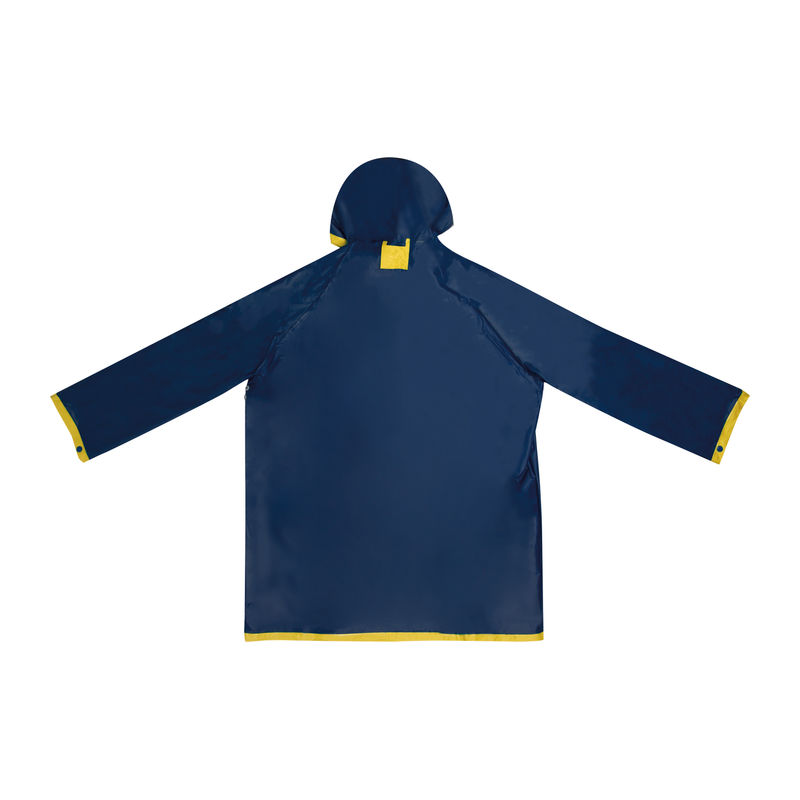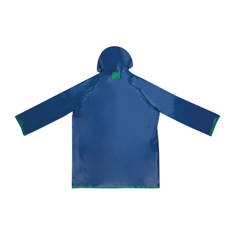 Remain dry in wet weather with this reversible raincoat featuring a hood, two pockets, and press studs. Available in silver/black, blue/green, and yellow/blue colour combinations.