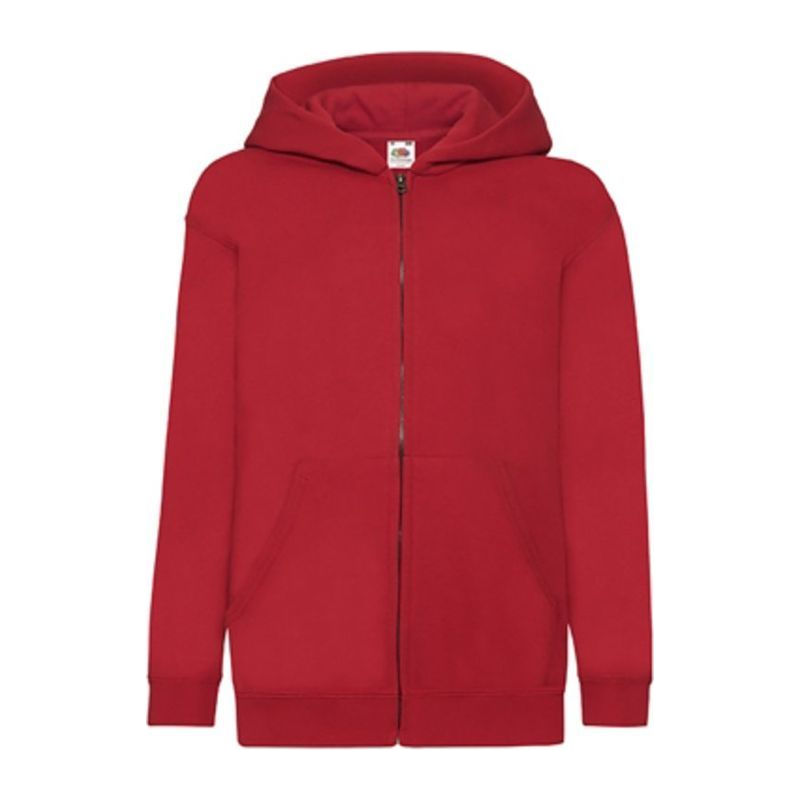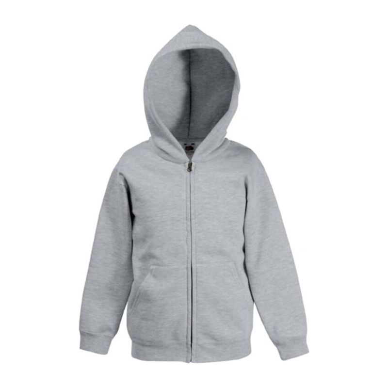 Full zip sweatshirt for children. Double fabric hood without draw cord, in-line with European childrenswear legislation•Single jersey back neck tape•Two front pouch pockets•Covered zip for enhanced printability•Waist and cuff in cotton/Lycra®rib•Produced using Belcoro® yarn for a cleaner, more stable print area.