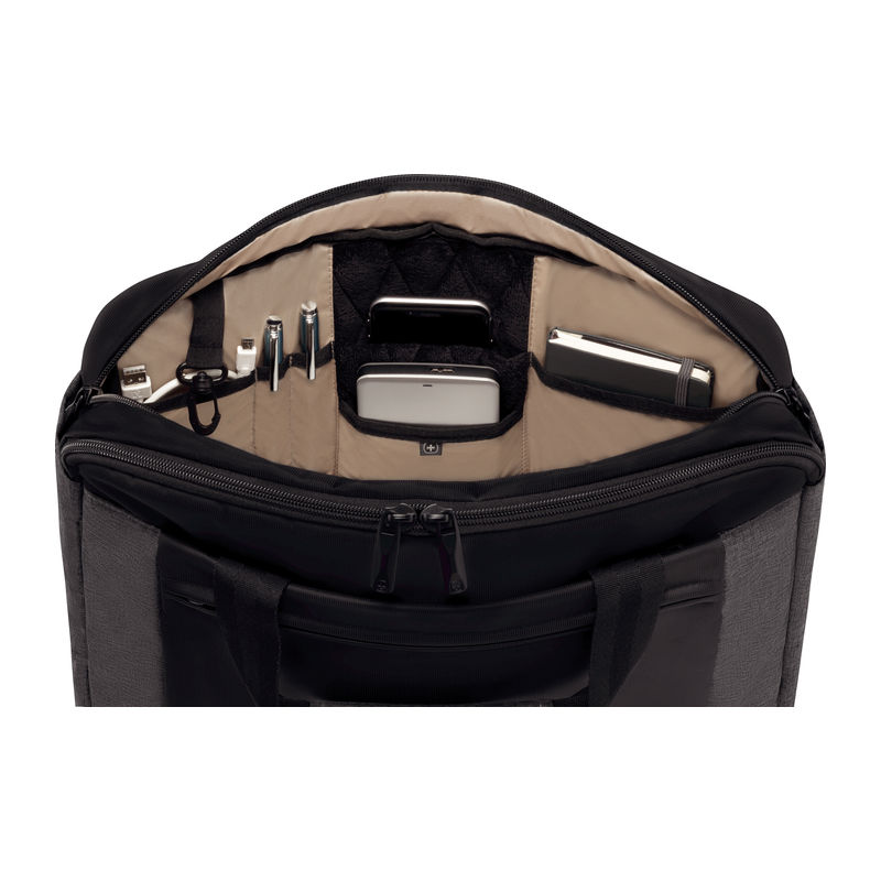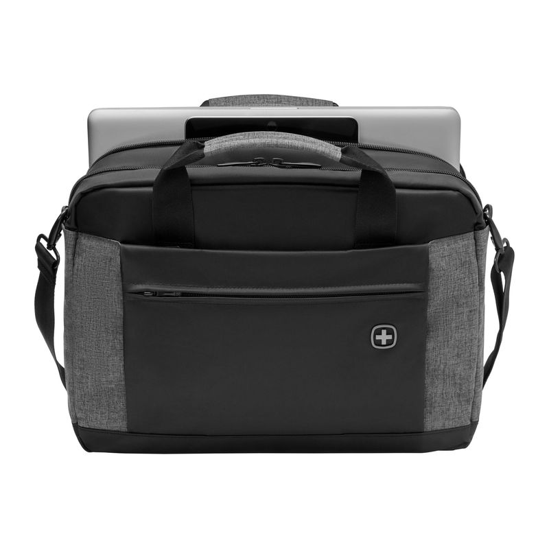 16" / 41 cm laptop briefcase with tablet / eReader pocket. Dual handles and removable shoulder strap. Rear pocket unzips to become a Pass-Thru trolley sleeve for easy travel with wheeled luggage.